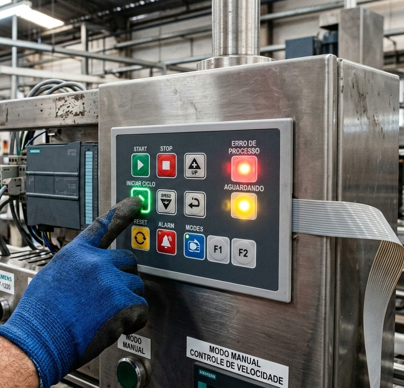 Interfaces HMI de alta performance que garantem o controle preciso de processos e máquinas. Projetamos teclados e painéis com vedação contra poeira e umidade, oferecendo feedback tátil nítido e visualização clara. Nossas soluções facilitam a interação do operador com o equipamento, aumentando a eficiência e a segurança no chão de fábrica mesmo em ambientes hostis.