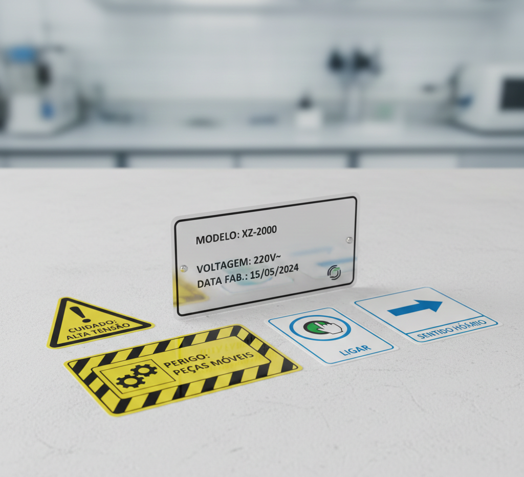 Fabricamos etiquetas de identificação, avisos de segurança e diagramas técnicos. Oferecemos personalização completa para atender às exigências técnicas e estéticas de cada cliente.